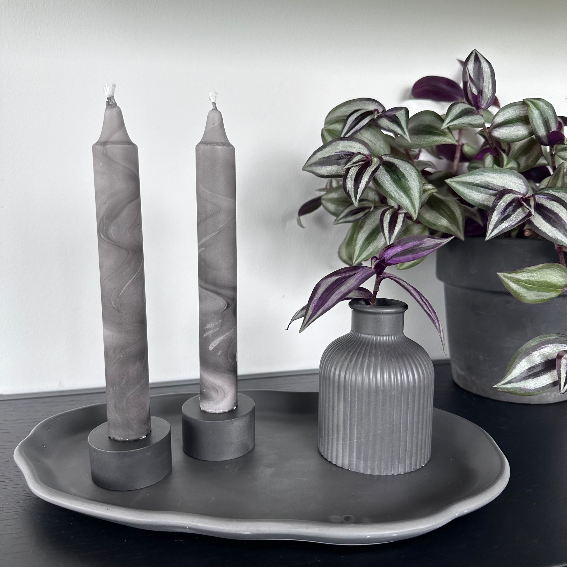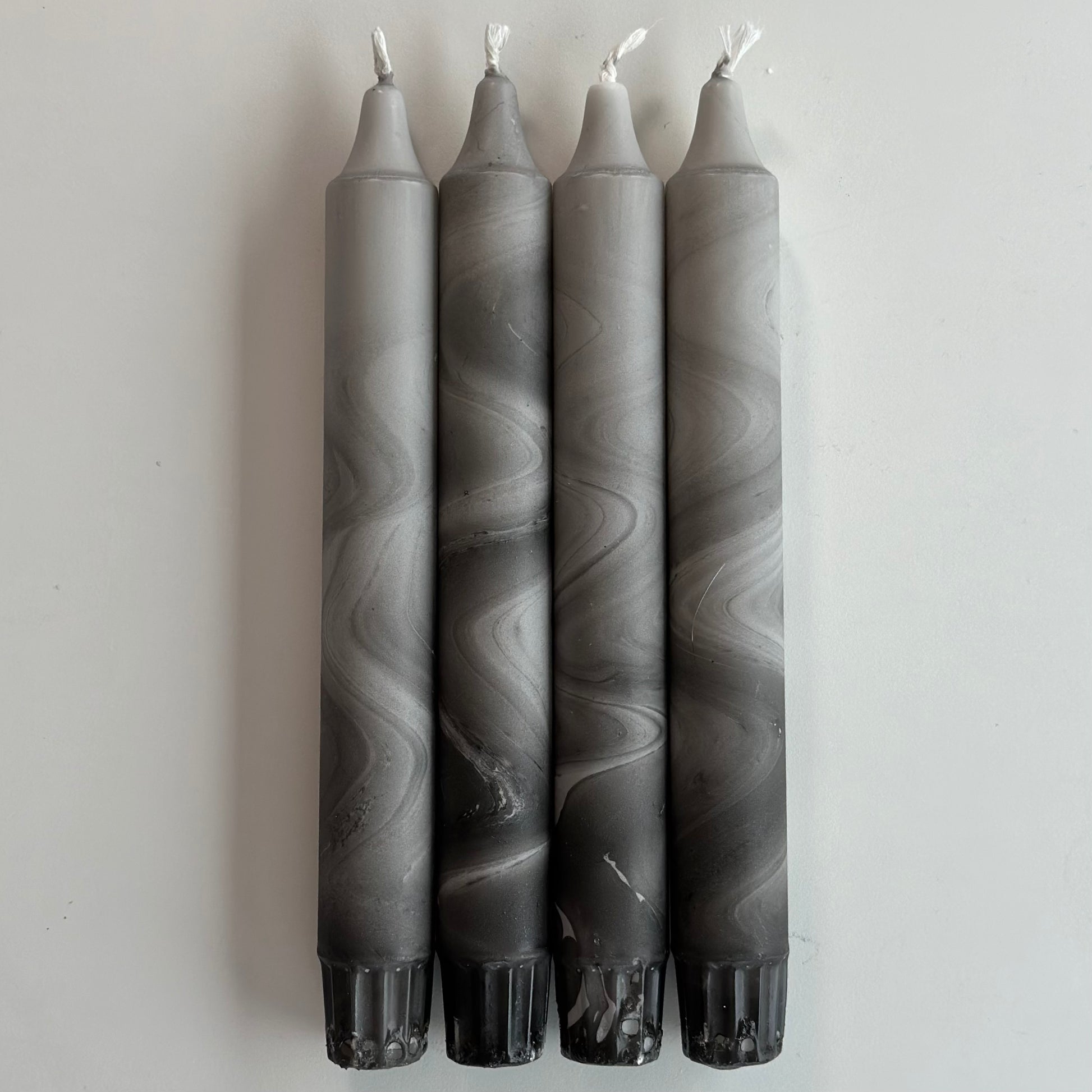 4 pk stearinlys, grå/sort/marmor