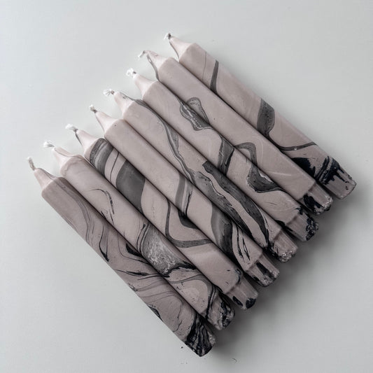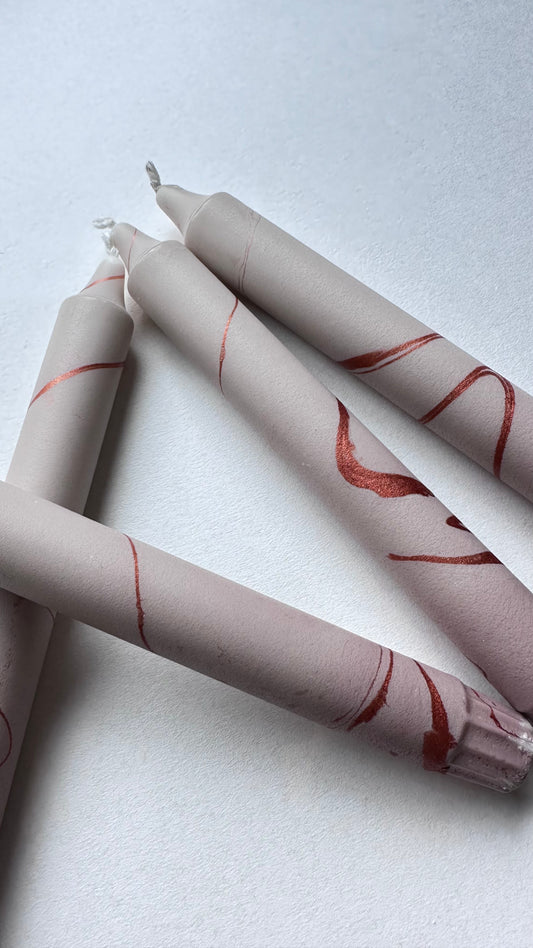 4 pk stearinlys, Beige/Tynn kobber/Marmorert